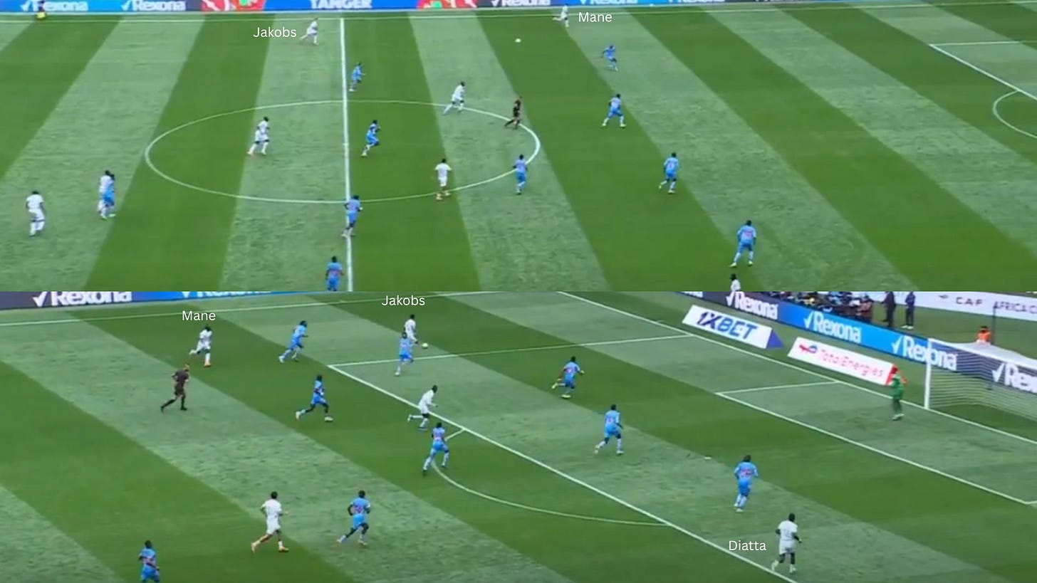Jakobs’ off-ball run against Congo illustrated the principle. Attacking the blind side, arriving late, and creating danger without direct involvement in build-up.